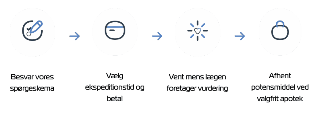 Du kan få en recept via din egen læge eller gennem en onlinekonsultation hos Potenslægen, hvor en autoriseret læge vurderer din situation og udskriver recept, hvis det er relevant.